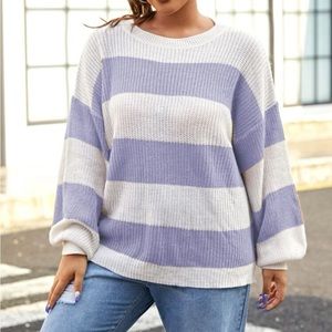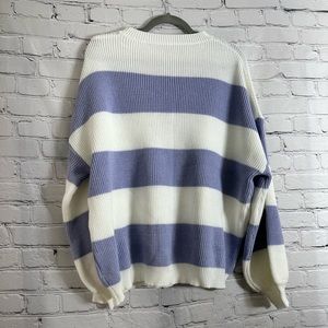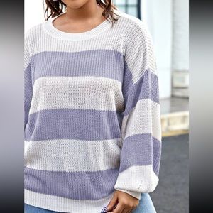 Color Block Drop Shoulder Ribbed Knit Sweater