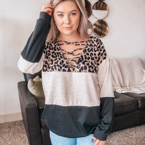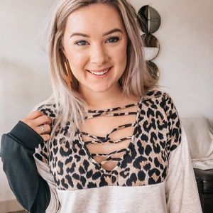 Color Block Leopard Top
