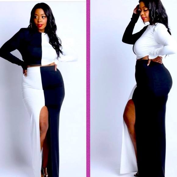 Color-block Crop top with matching skirt. See picture for details. No pockets. Elastic waistband in skirt.