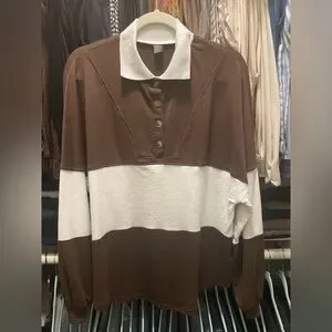 Stylish brown and white long sleeve rugby with button details.