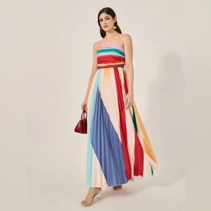 Color Block Pleated Stripe Strapless A-Line Maxi Dress Women’s Size Large (This does not have a brand or size tag. Please refer to measurements below)