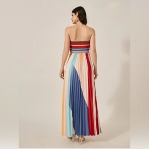 Color Block Pleated Stripe Strapless Bandeau A-Line Maxi Dress Women’s Size L