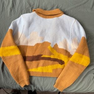 SUPER cute button down knit top with a color block design. I'm only selling because unfortunately it's too small for me, but it's in perfect condition.