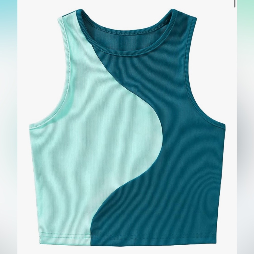 Color block ribbed knit crop tank top. Tight fit. Size listed as XL but may fare better on those who wear size medium or have a smaller chest.