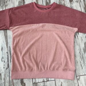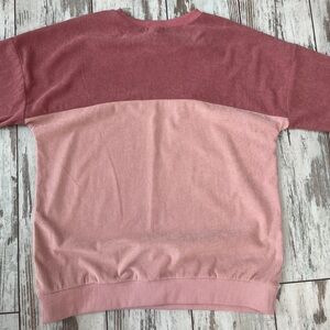 Ribbed color block sweatshirt, pink mauve cream pullover, oversized corduroy style top, drop shoulder tunic, women's small oversized sweater, cute fall pullover, casual colorblock crewneck, soft girl aesthetic top.