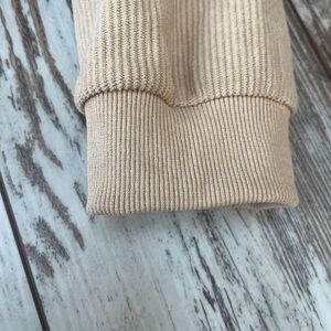 Design: Ribbed knit texture, color block pattern, crewneck, drop shoulders, long sleeves.