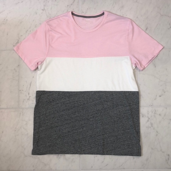 Color block tee. Light pink, white, & heather gray.