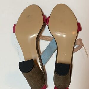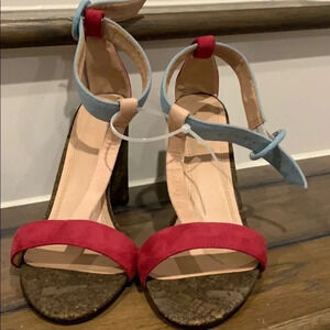 Color Block Suede Sandals Ankle Strap Block Heel New