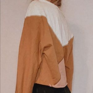 Light brown, super light grey, and light pink colors. Super cute and comfy. Cute with a skirt or jeans with a belt tucked in. Got from a boutique but it wasn’t really my style. Have no idea what it was called. Price is negotiable :)