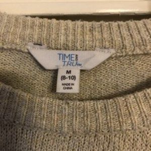 Color block sweatshirt. Tri-colored sweater (tan, white, light-gray, dark-gray).