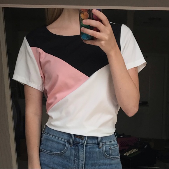 Brand: SHEIN Style: Color Block Blouse Color: White / Pink / Black Size: S Condition: Excellent (never worn)