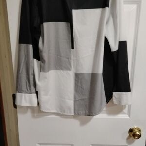 Stylish color block blouse featuring black, gray, and white tones. Perfect for a chic and modern look. EC. NWOT.