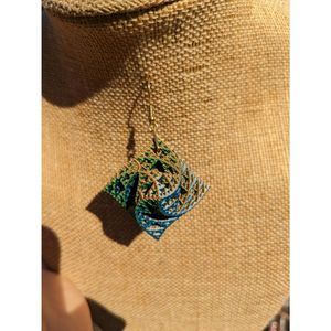 Color Changing Blue-Green-Orange 3D Printed Warped Sierpinski Octahedron Earring
