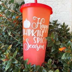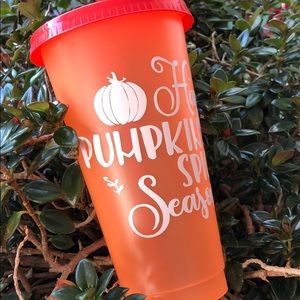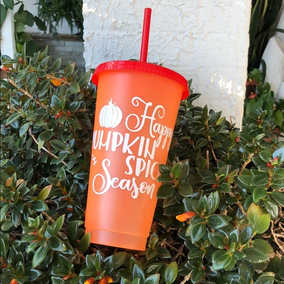 Get ready for fall with this 24 oz cold color changing cup! “Happy Pumpkin Spice Season” message. Color changes from orange to red when cold liquid is added.