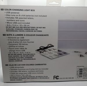 Kikkerland Color-Changing Light Box, USB powered, with 16 different colors and a ton of letters so you can put your own personal messages on it - NEW.