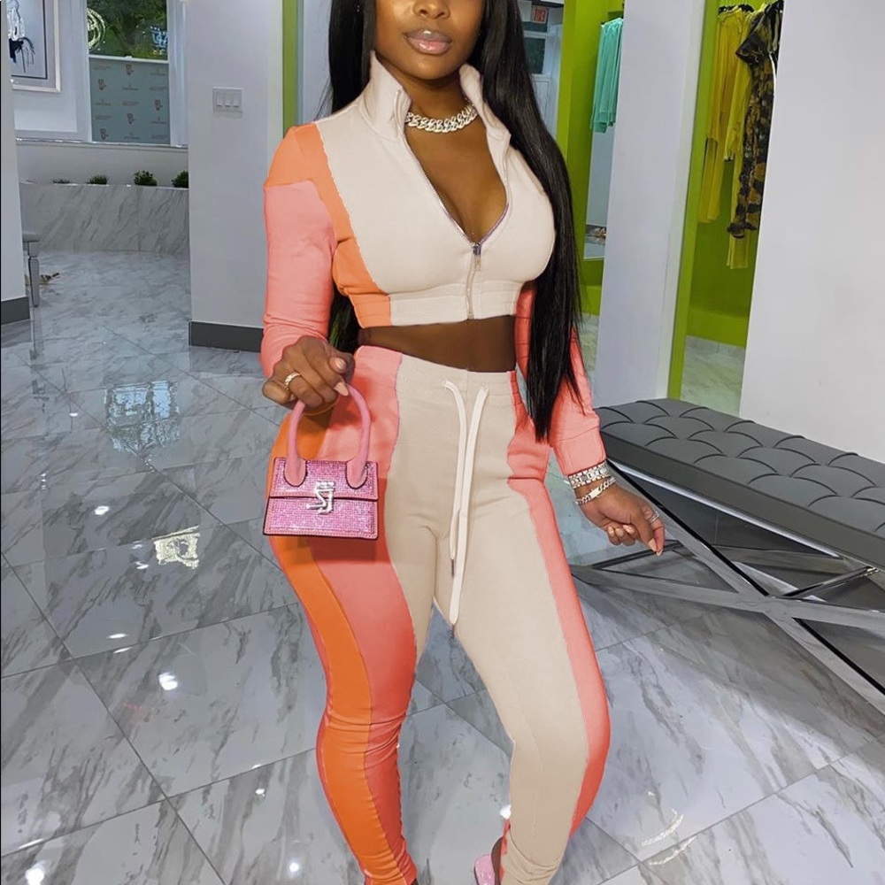 Womens Tracksuit gives you a casual simple look and make you fashionable in autumn, summer and spring, which shows your female curve, flattering and sexy. It is made of 85% polyester, soft, and comfortable.