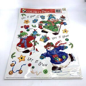 Color Clings Vinyl Snowmen Snowflakes 2001 2004 Whimsical Lot of 2 Vintage Unused NOS