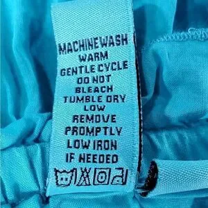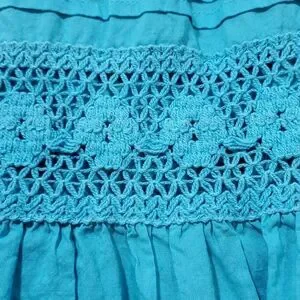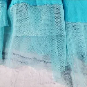 Color Code blue skirt with elastic waistband, partial lining, knitted see through lace in the middle of the skirt with lighter blue tulle at the hemline. Machine washable.