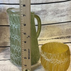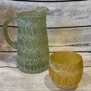 Color Craft Corp Green Spaghetti String Pitcher and Roly Poly Glass