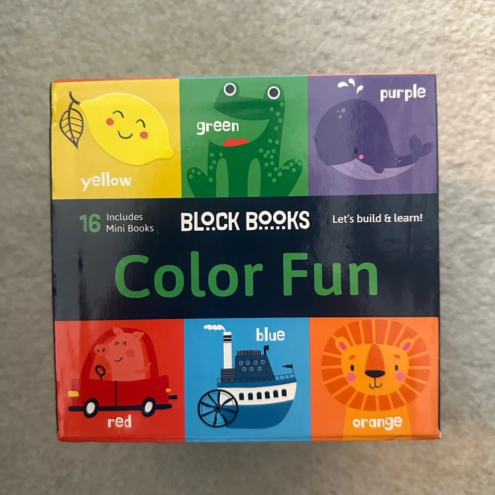 Build and learn! Introduce your little one to colors with this set of 16 mini books.