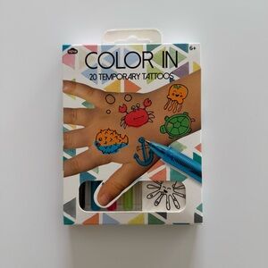 Color In 20 temporary tattoos kit.