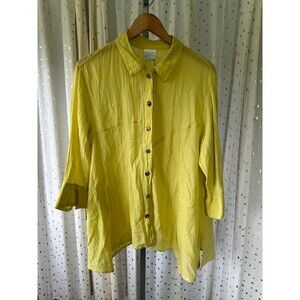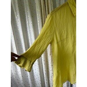 Color Me 100% Cotton CMC Bell Sleeves Button Down Crinkle Handkerchief Hem Top L