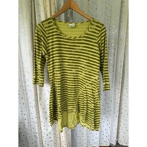 Color Me 100% Cotton CMC Stripe Quarter Sleeve Front Shark Bite Hem Hi-Lo Tunic S
