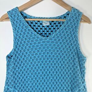Color Me Cotton Top Women Medium Blue Textured Knit Tank Made in USA Art to Wear