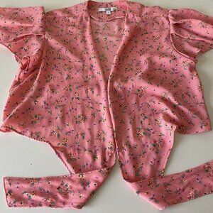 Color Me Courtney 8 Ellie Top Crop Pink Floral Tie Front Flutter Feminine Fairy
