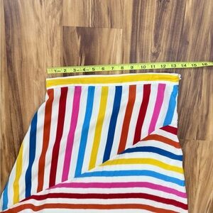 Brighten your wardrobe with this vibrant asymmetrical skirt. Featuring bold stripes in red, blue, yellow, and white, this skirt is perfect for any occasion. Pair it with your favorite top for a chic look.