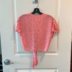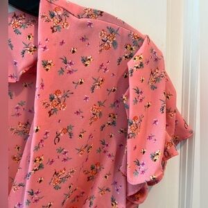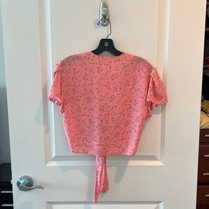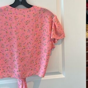 Pink fruit printed woven (100% Polyester). Top. Short sleeves.