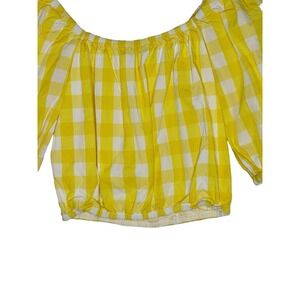 Color Me Courtney Kris Top Shirt XS Off the Shoulder Cotton Yellow Gingham Short Sleeve.