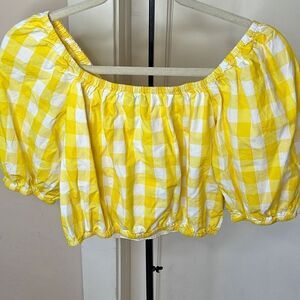 Color Me Courtney Kris Yellow Gingham Off Shoulder Puff Sleeve Crop Top Size Sma
