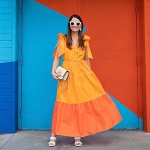 Color Me Courtney Louise Color Block Orange Tiered Maxi Dress v-neck size 0