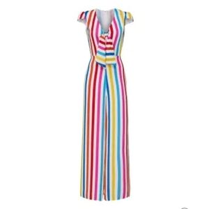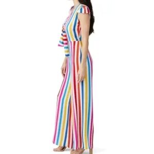 Make a rainbow-striped statement in this instantly mood-elevating tie-front jumpsuit from Color Me Courtney