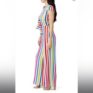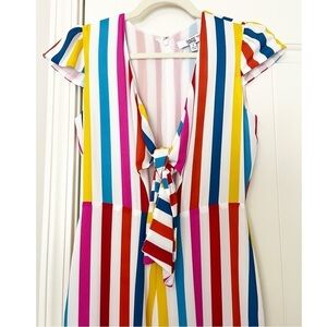 Make a rainbow-striped statement in this instantly mood-elevating tie-front jumpsuit from Color Me Courtney