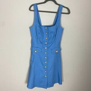 Color Me Courtney Utility Alle Button Front Dress Blue Womens 6 Square Neck