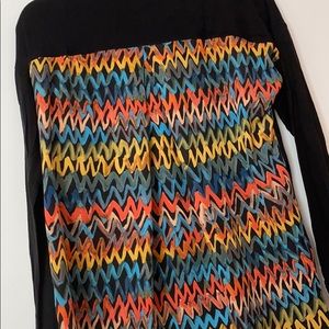 Super fun, super comfy, super awesome too! Blouse like material in the back, jersey-tee in the front! In good condition!!
