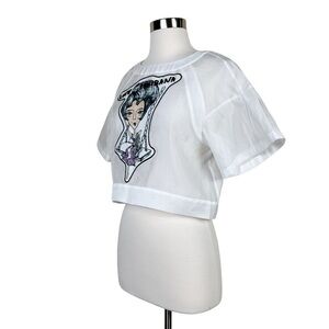 Color Mikibana White Blouse Mesh See Through Swing Designer Rare Size S