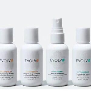 Evolvh Discovery Kit for color treated hair contains 4 refillable travel-sized essentials to cleanse, treat, protect, and repair.