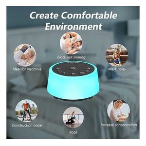 Soothing Sounds and Sleep White Noise Machine 32 Volume Levels 5 Timers Adjustable Brightness Memory Function for Adults Kids Baby