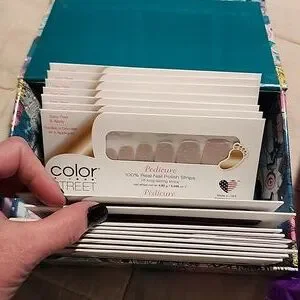 16 colors, 14 nail sets that have patterns, solid neon's and glitters. 2 pedicure colors, one glitter one metallic. All are new and unopened. These retail for $12-$15 each.