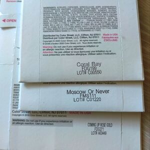 Retired Color Street nail polish sets. Including Coming Up Rose Gold, Coral Bay, and Moscow Or Never. All complete and in the original packaging. Awesome way to salon quality nails at home.