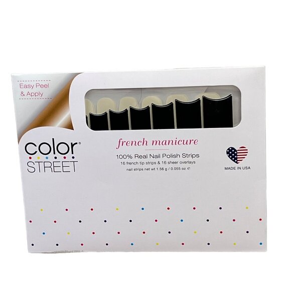 New in package Color Street French Manicure nail polish strips in Gotham Night. Includes 16 french tip strips and 16 overlays.