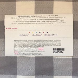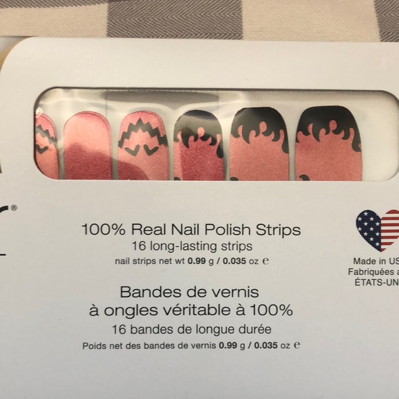 Color Street nail polish strips. Includes 16 long lasting strips of various sizes. Typically lasts about 2 weeks on nails. Made with real nail polish and can be removed with regular nail polish remover. Easy peel and apply application. Comes with nail prep pad and nail file.