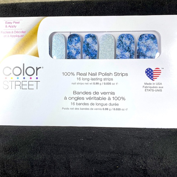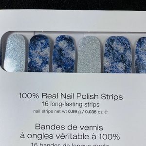 Get a galactic nail look in no time with In Another Galaxy, a black and blue cosmic pattern with pale silver glitter. Glitter finish.