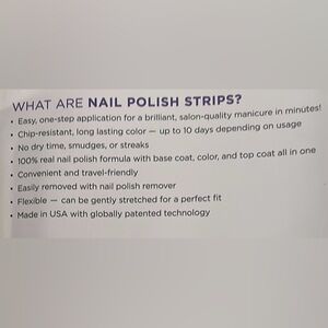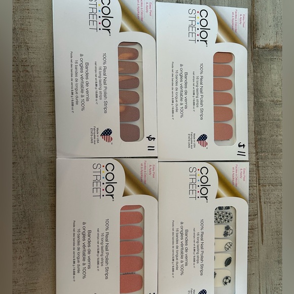 Set of three shimmer Color Street gel nail stickers and one overlay set. No polish/UV light needed, easy and fast to apply. Directions shown in pictures above.