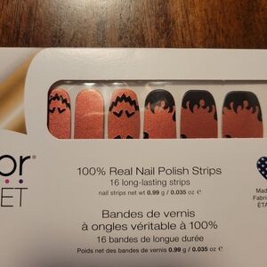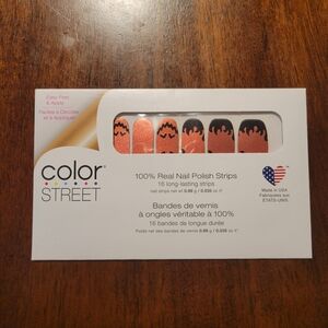 Color Street nail polish strips in orange and black. Easy to apply and long-lasting.
