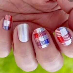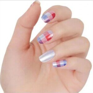 New in package Color Street nail strips. Retired “Plaid in the USA” is a shimmering porcelain white base featuring denim blue and ribbon red gingham check.