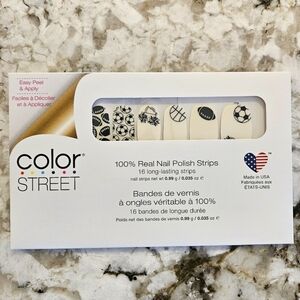 Celebrate your love for sports with Color Street's black and white nail strips, featuring iconic sports equipment designs.